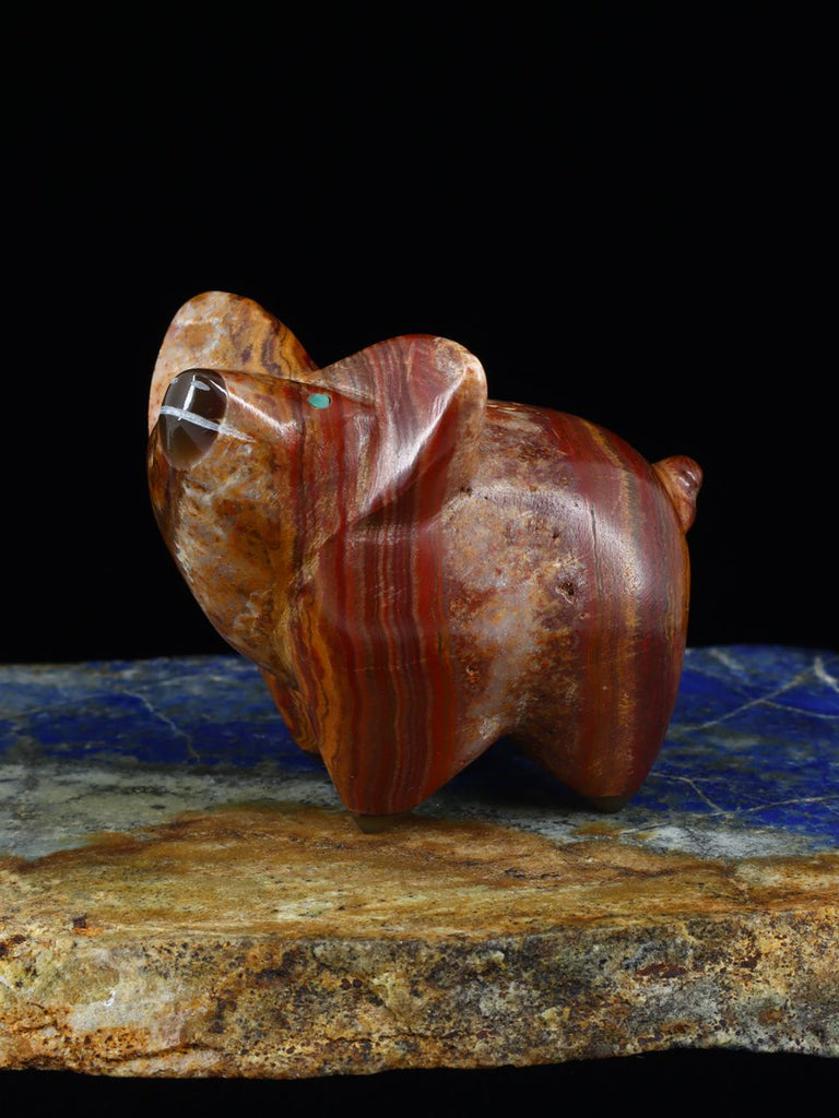 American Indians have used fetishes throughout recorded history. Fetish carvings are believed to hold magical powers and protect the owner or craftsmen from various problems of mind or body.  The Zuni Indian Fetish must be taken care of and are given offerings of cornmeal and kept in special turquoise encrusted fetish pots or pouches. It is also believed that the care a Native American Fetish receives is directly proportional to the protection it will provide.