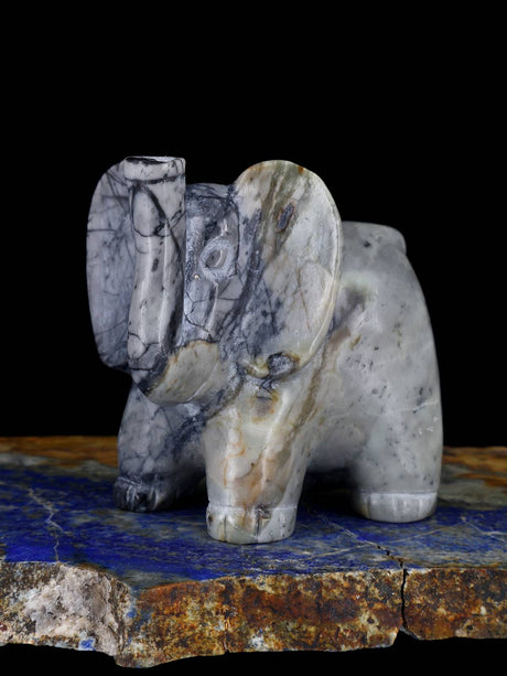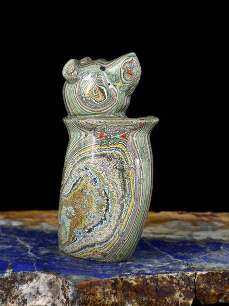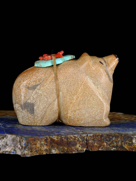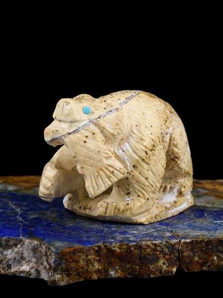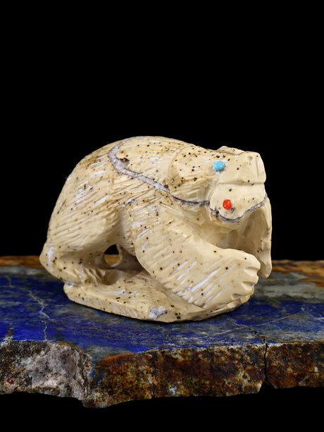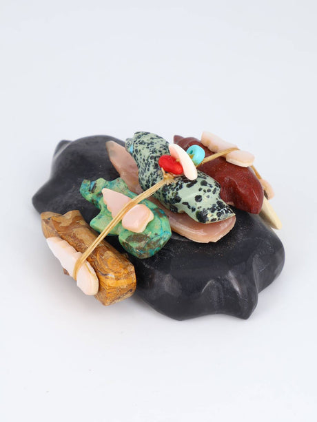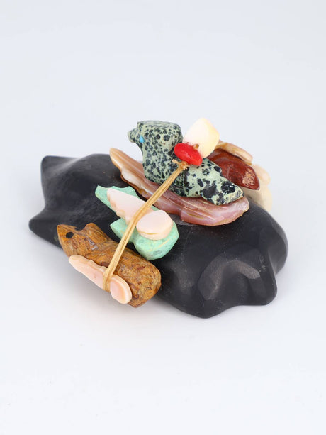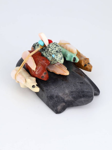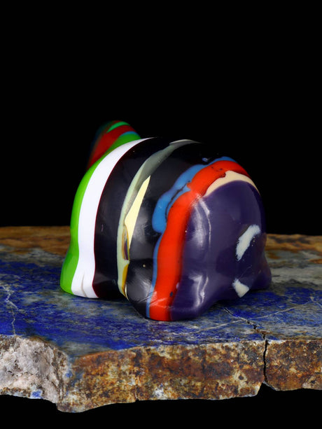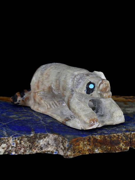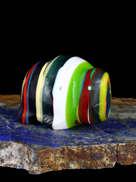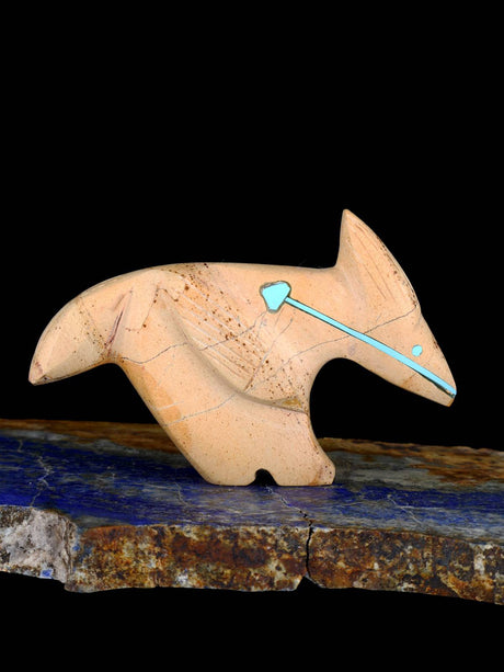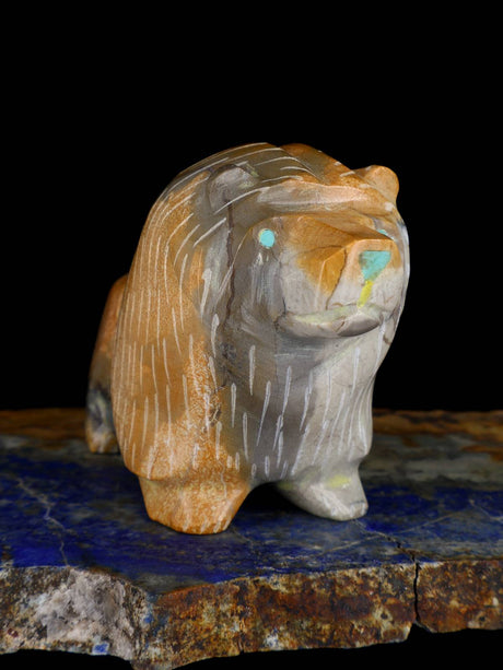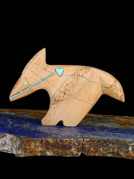 Serpentine Mosaic Wolf Zuni Fetish Carving