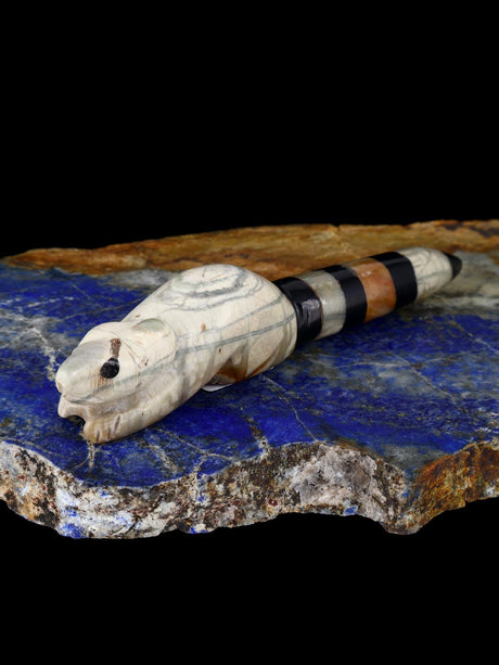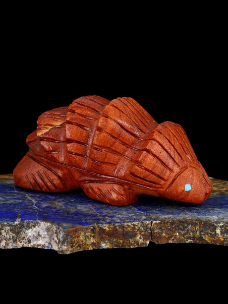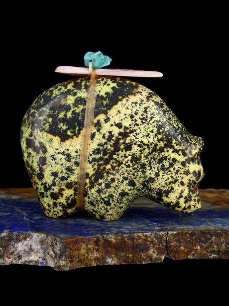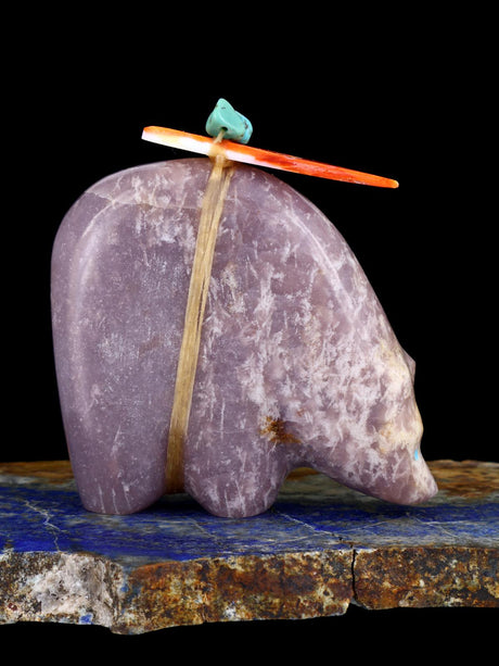 American Indians have used fetishes throughout recorded history. Fetish carvings are believed to hold magical powers and protect the owner or craftsmen from various problems of mind or body. The Zuni Indian Fetish must be taken care of and are given offerings of cornmeal and kept in special turquoise encrusted fetish pots or pouches. It is also believed that the care a Native American Fetish receives is directly proportional to the protection it will provide.