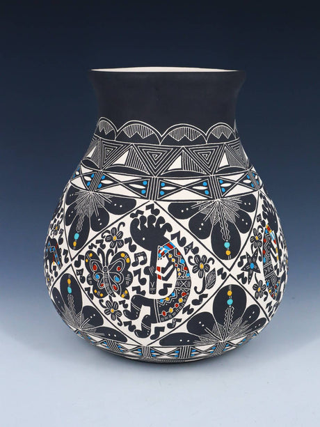 Pottery from Santa Clara, Hopi, Zuni, Santo Domingo, Zia, San Juan, San Ildefonso and Navajo artists including Anderson Peynetsa, Dena Suina, Nancy Chilly, Marcellus Medina, Ralph Aragon, John Whiterock, Deldrick Cellicion, Rose Pacheco, Gwen Tafoya, Stella Chavarria, Adelle Nampeyo, Stella Teller, and more.