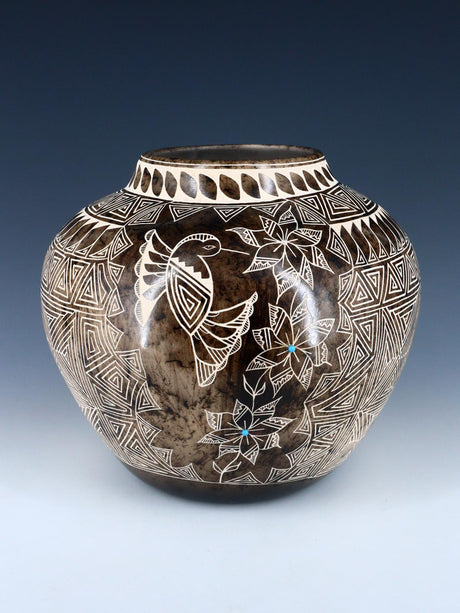 Etched Hummingbird Horsehair Acoma Pueblo Pottery