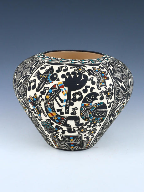 Etched Friendship Dancers Horsehair Acoma Pueblo Pottery