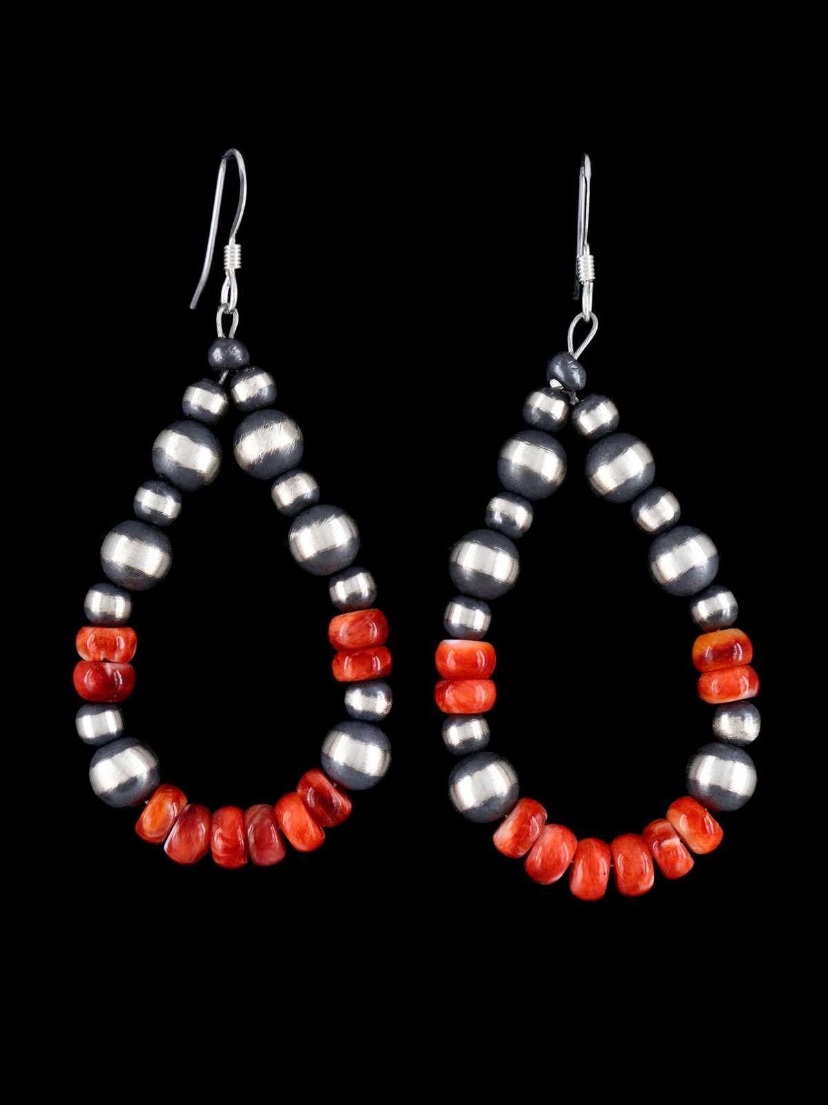 Piedras de ostra espinosas de color púrpura, rojo y naranja mezcladas con piedras de turquesa y cuentas de plata de ley en ganchos de plata de ley.