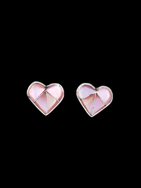 Pendientes con forma de corazón turquesa con incrustaciones Zuni de nativos americanos