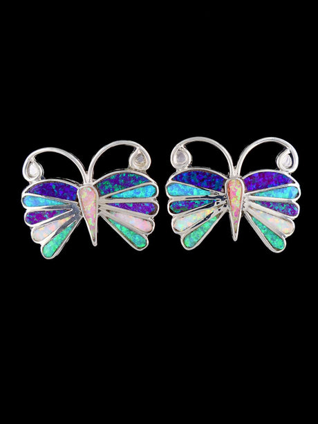 Pendientes con poste de mariposa y opalita con incrustaciones Zuni
