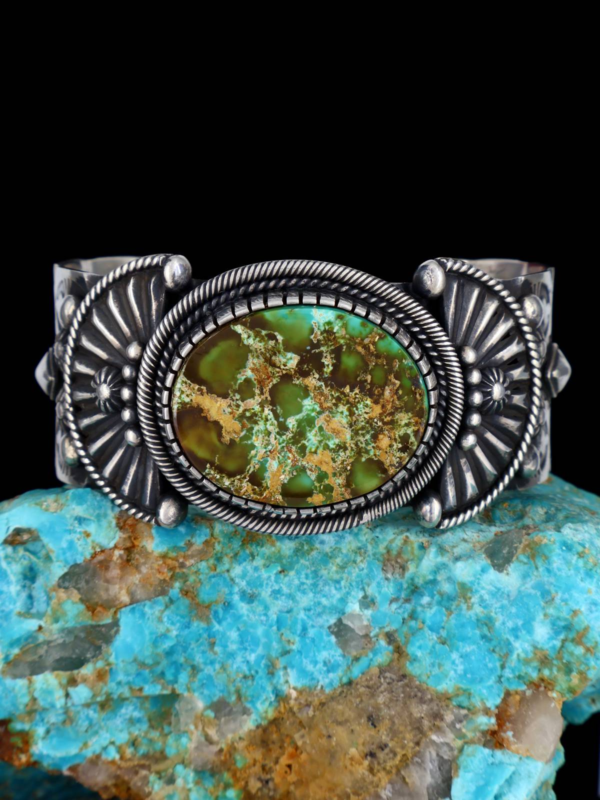 Brazalete de plata de ley fundido en arena turquesa Golden Hill Navajo
