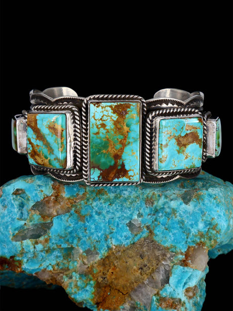 Native American Indian Jewelry Sterling Silver Royston Turquoise Cuff Bracelet