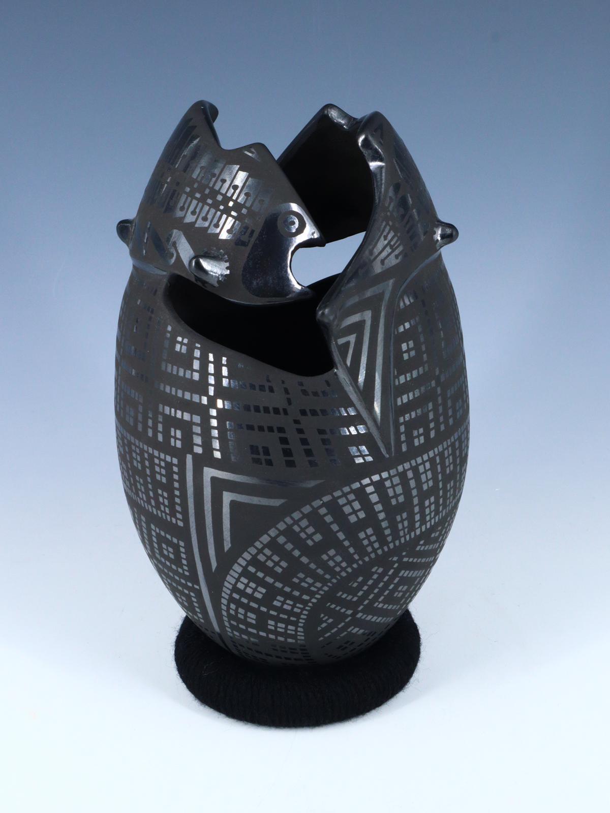 Mata Ortiz Pájaro de cerámica negra enrollado a mano