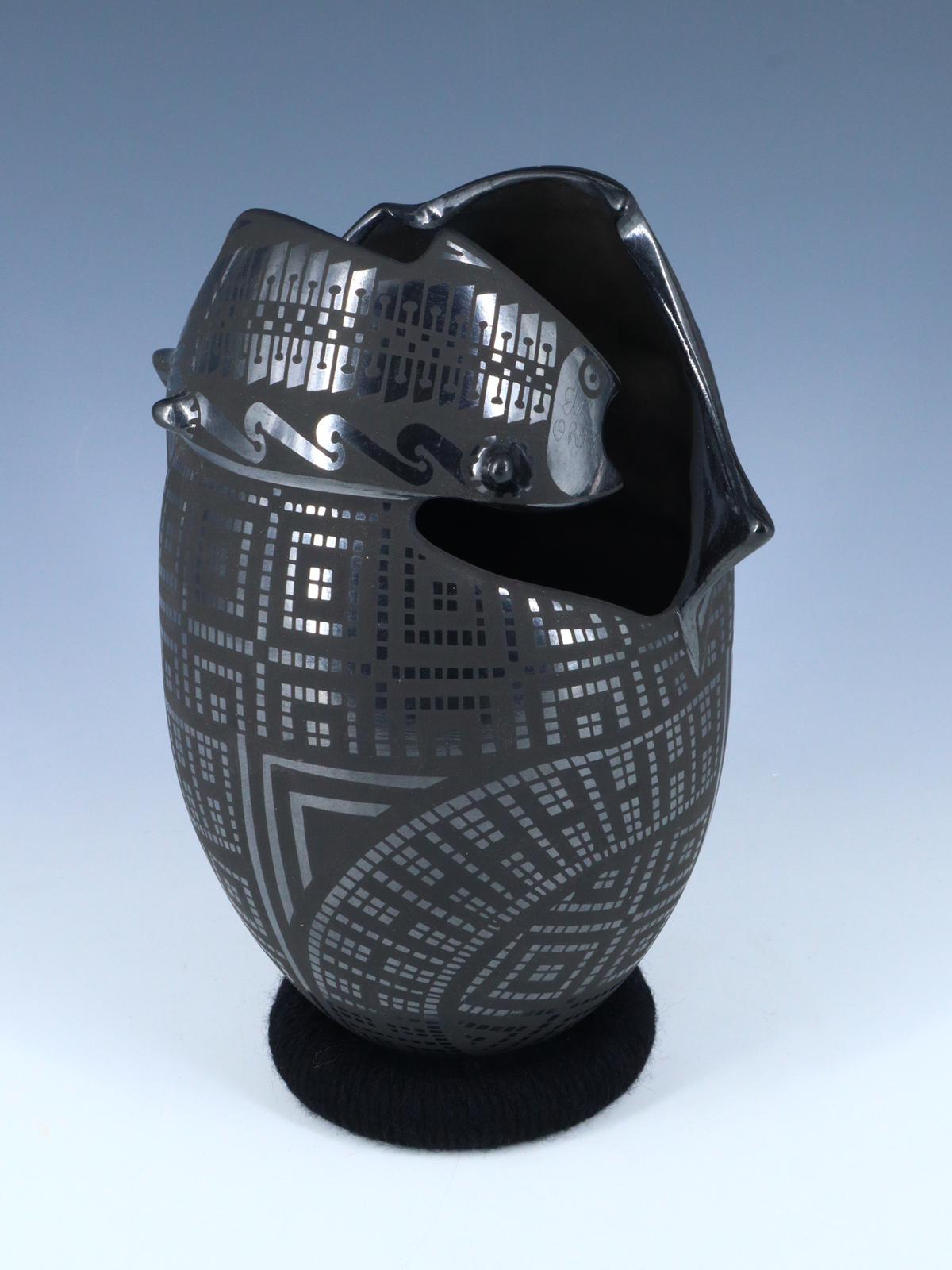 Mata Ortiz Pájaro de cerámica negra enrollado a mano está agotado y se enviará tan pronto como vuelva a estar disponible.