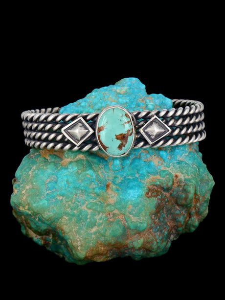 Navajo Sculpted #8 Turquoise Sterling Silver Cuff Bracelet