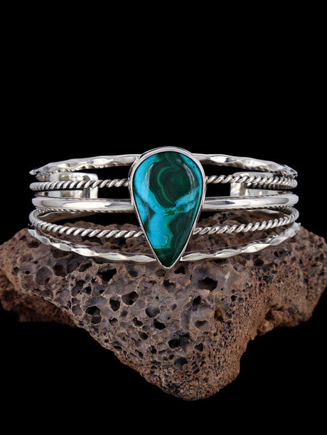 Native American Chrysocolla and Malachite Sterling Silver Cuff Bracelet