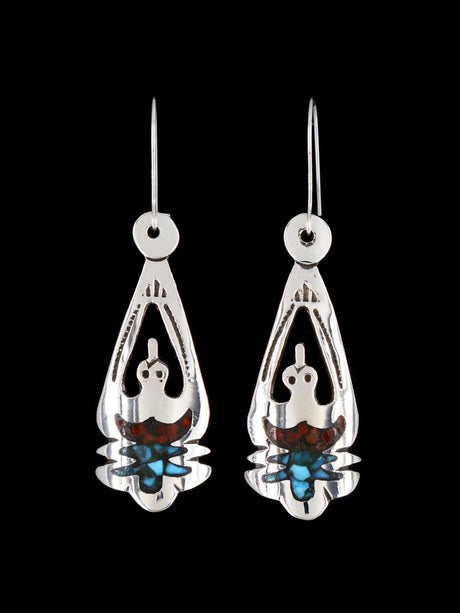 Pendientes Thunderbird colgantes de plata de ley con ónix navajo