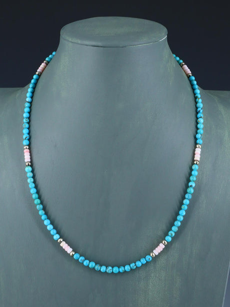 Collar de cinco hebras de turquesa nativa americana y ostra espinosa