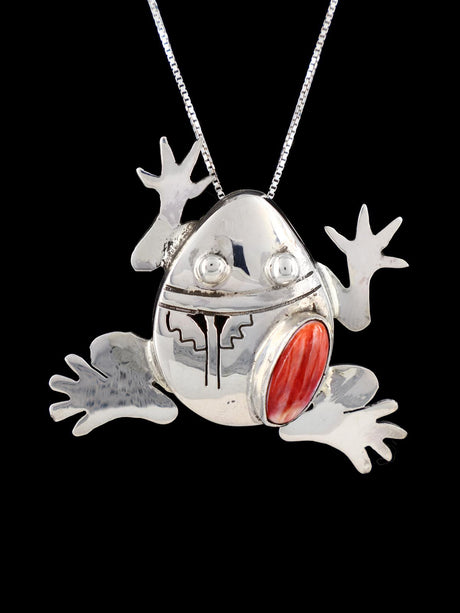 Colgante de rana ostra espinosa de plata de ley nativa americana