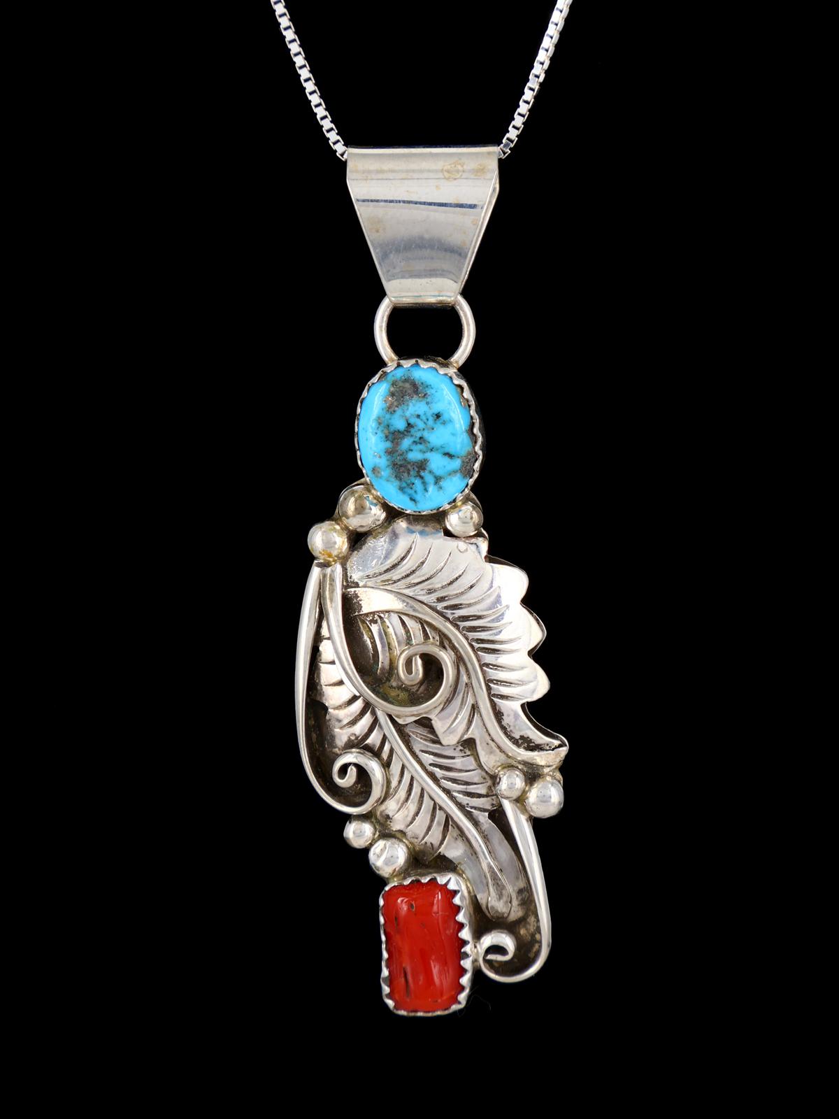 Colgante de garra de coral y turquesa de plata de ley navajo