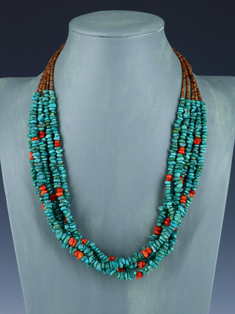 Estate Native American Two Strand Coral and Turquoise Necklace