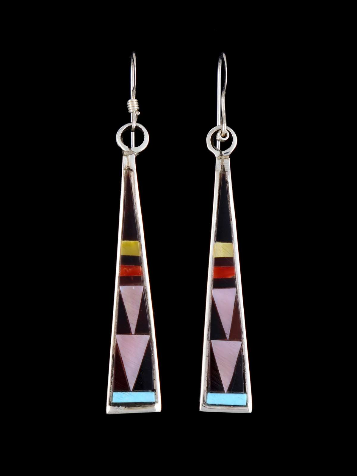 Pendientes de plata de ley con incrustaciones de cara de sol Zuni