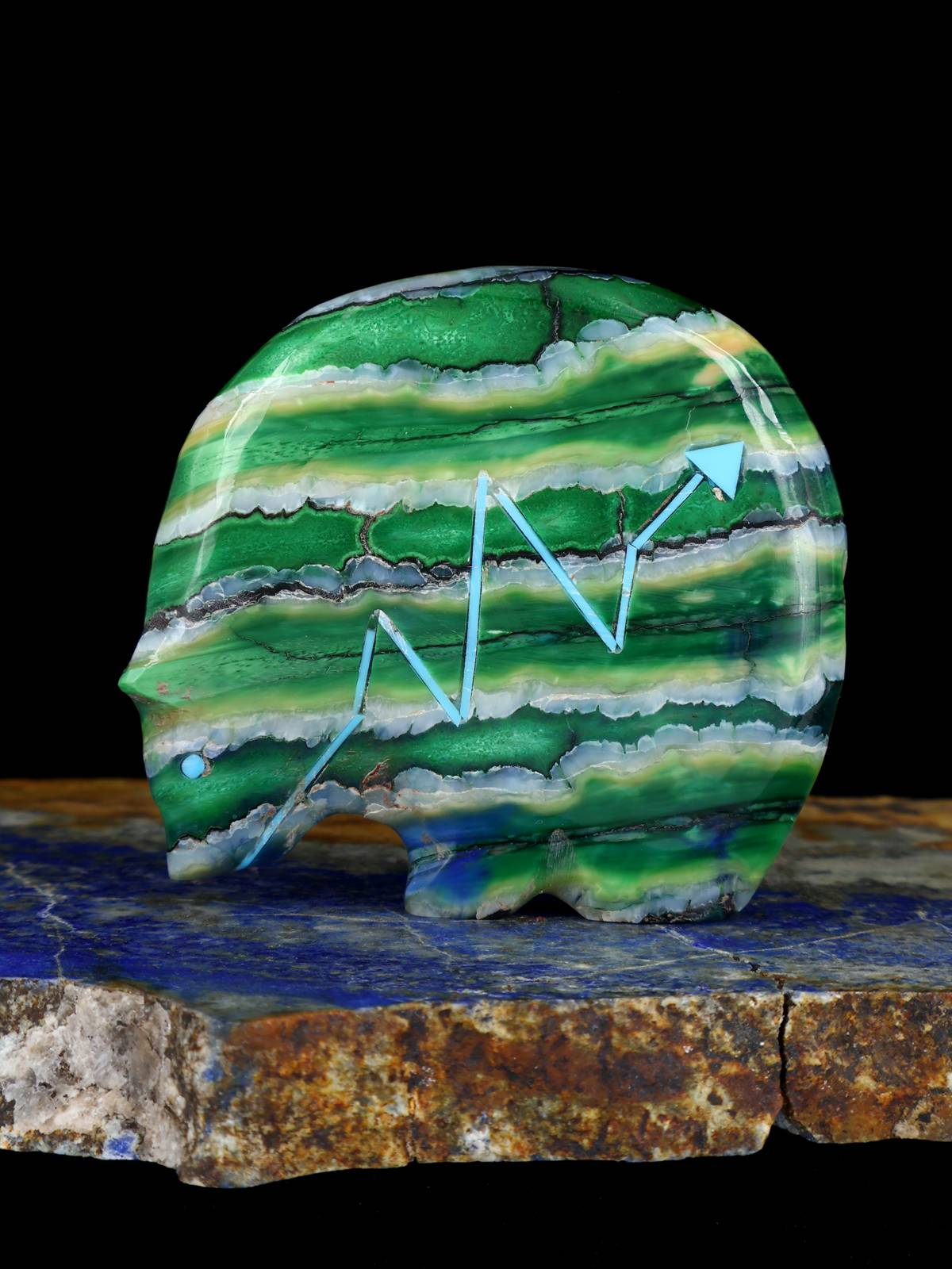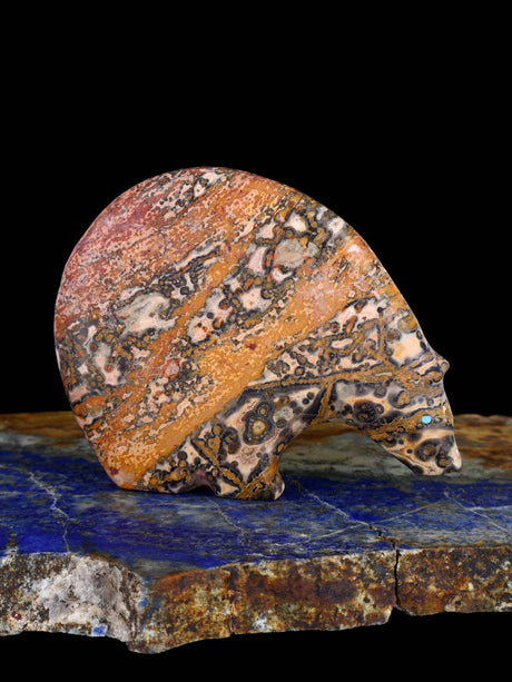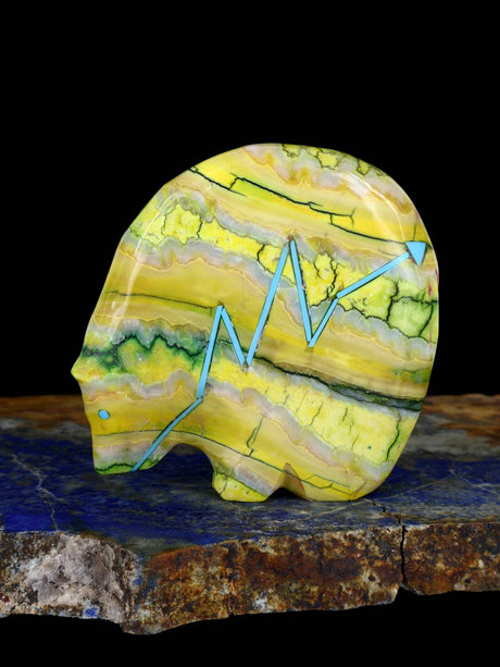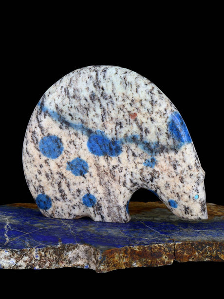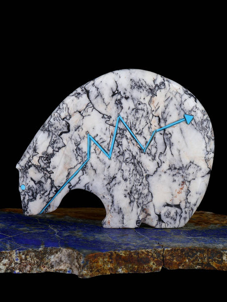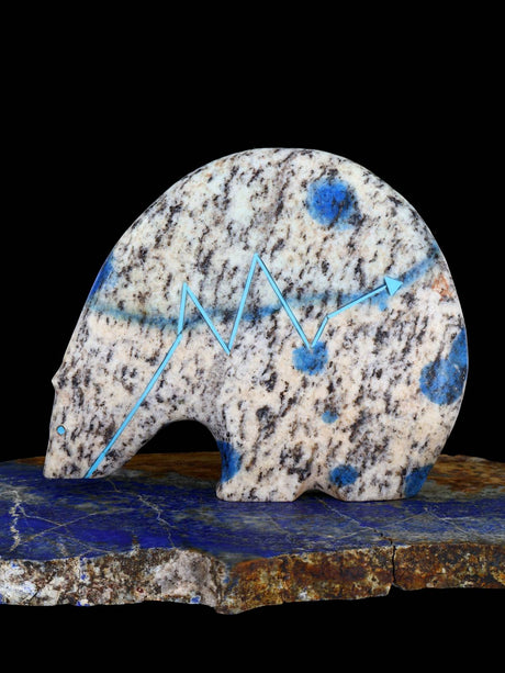Stewart Quandelacy es uno de los talladores fetichistas Zuni más reconocidos y coleccionados de nuestro tiempo. Es más conocido por sus osos medicinales con una línea de corazón en zig-zag. Stewart talla varios otros animales junto con su esposa, Priscilla Lasiloo, incluidos osos de cuello largo y pumas.