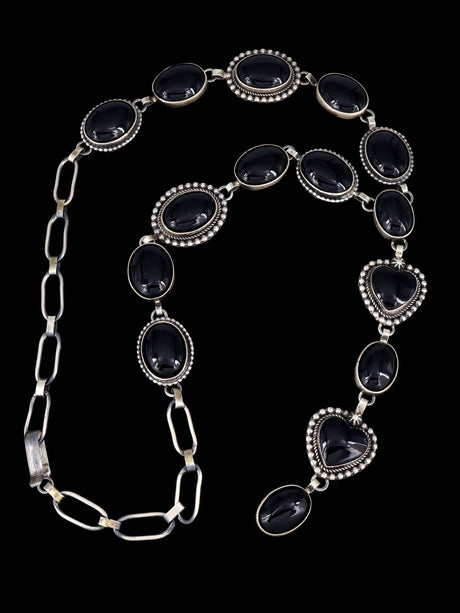 Estate Vintage Heavy Native American Sterling Silver Onyx Bracelet