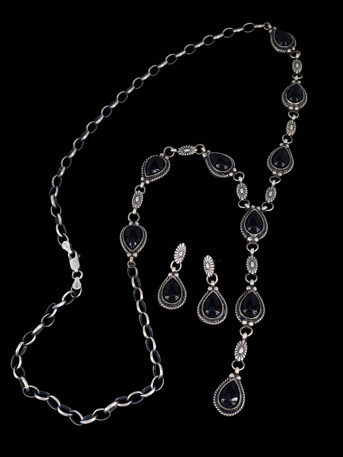 Conjunto de collar y pendientes de flor de calabaza de ónix negro nativo americano