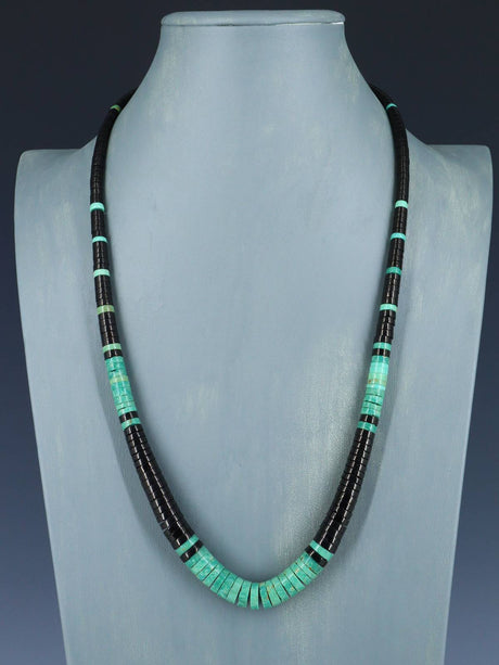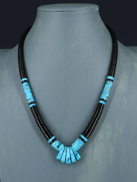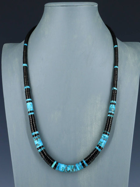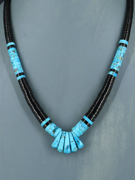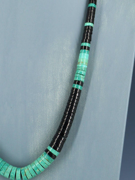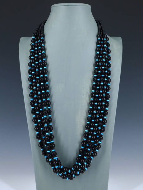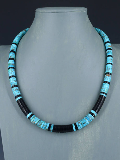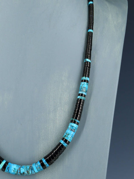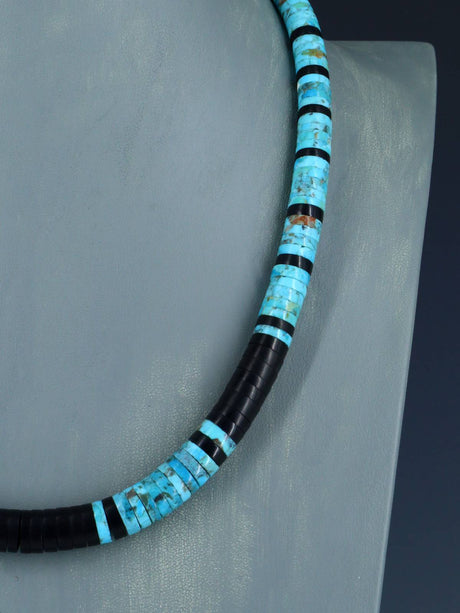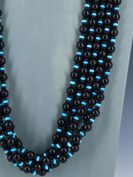 18" Native American Turquoise and Onyx Beaded Choker Necklace Set