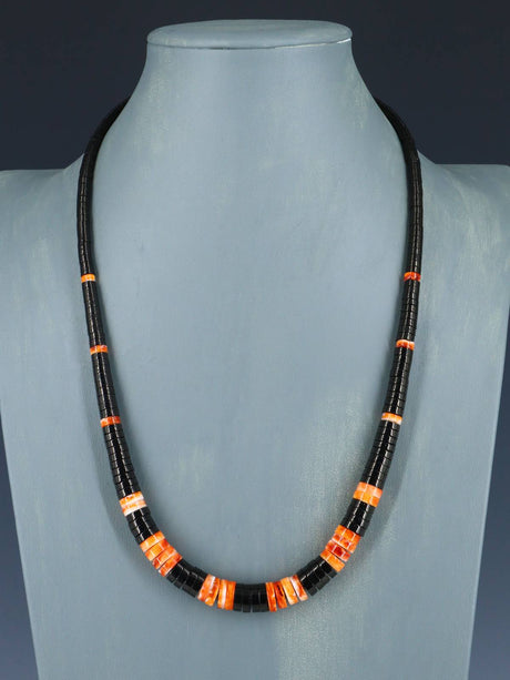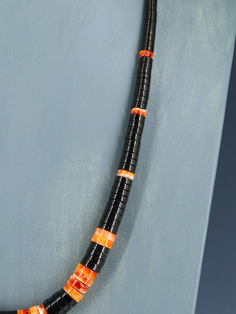 Collar de ostras espinosas y turquesa de una sola hebra de joyería india nativa americana