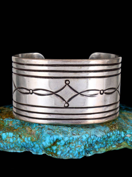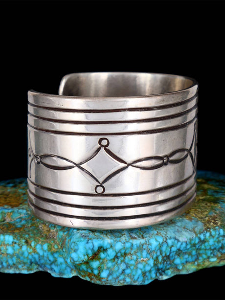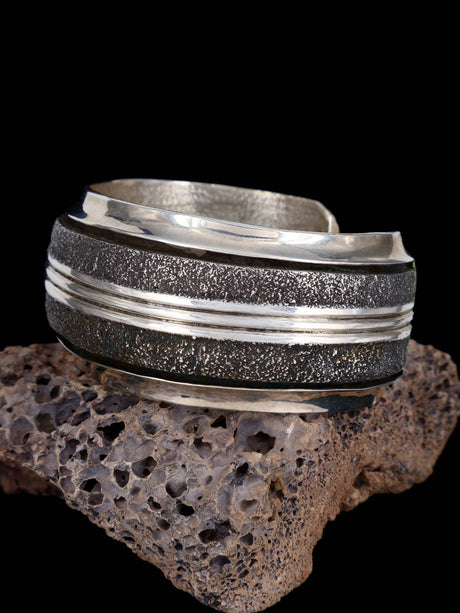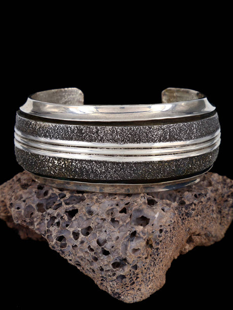 Pulsera de puño de hueso de dinosaurio con gema de plata de ley fundida de Tufa Navajo