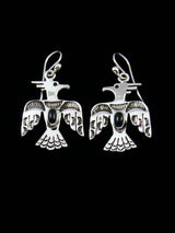 Pendientes Thunderbird colgantes de plata de ley con ónix navajo