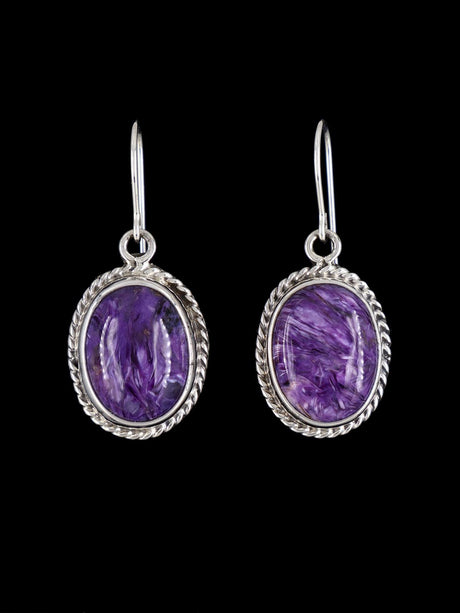 Boucles d'oreilles pendantes en charoite violette en argent sterling Navajo
