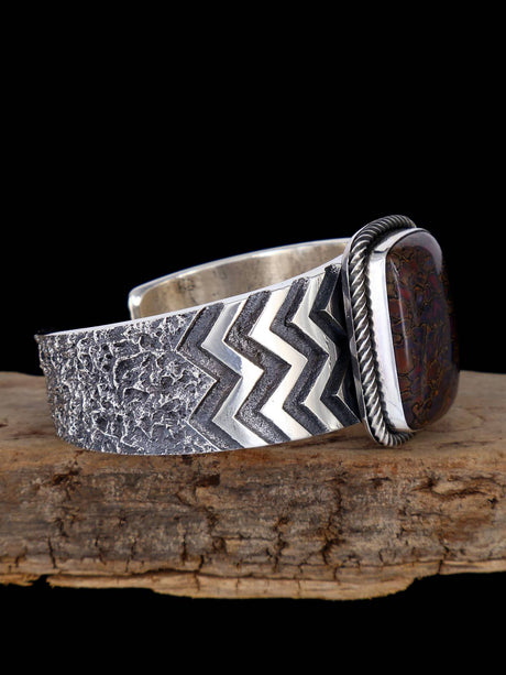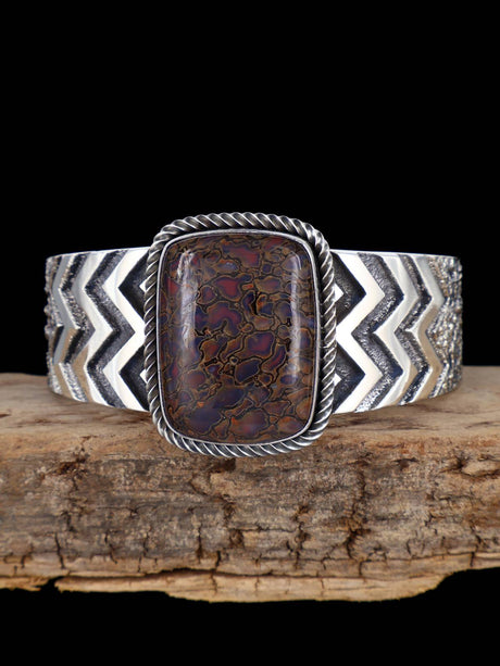 Native American Sterling Silver Kingman Turquoise and Coral Inlay Cuff Bracelet