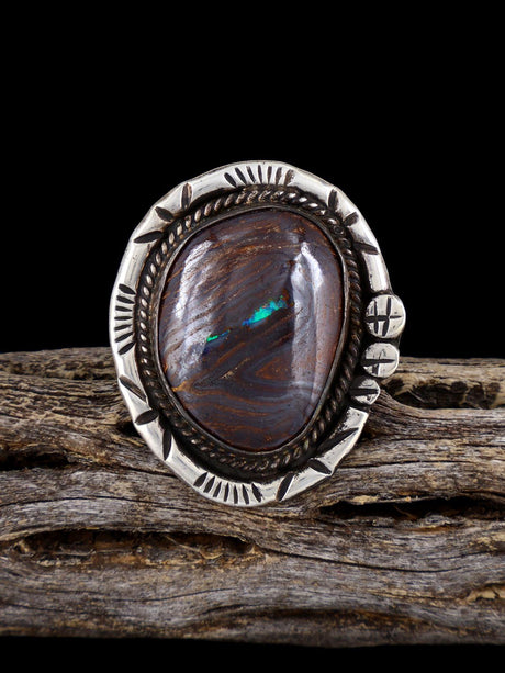 Navajo Golden Hill Turquoise Petroglyph Ring, Taille réglable 6 1/2+