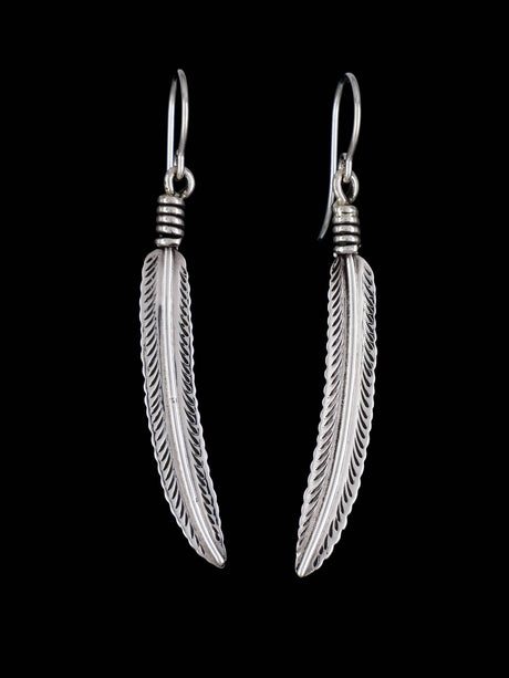 Boucles d'oreilles Navajo en argent sterling avec plumes pendantes