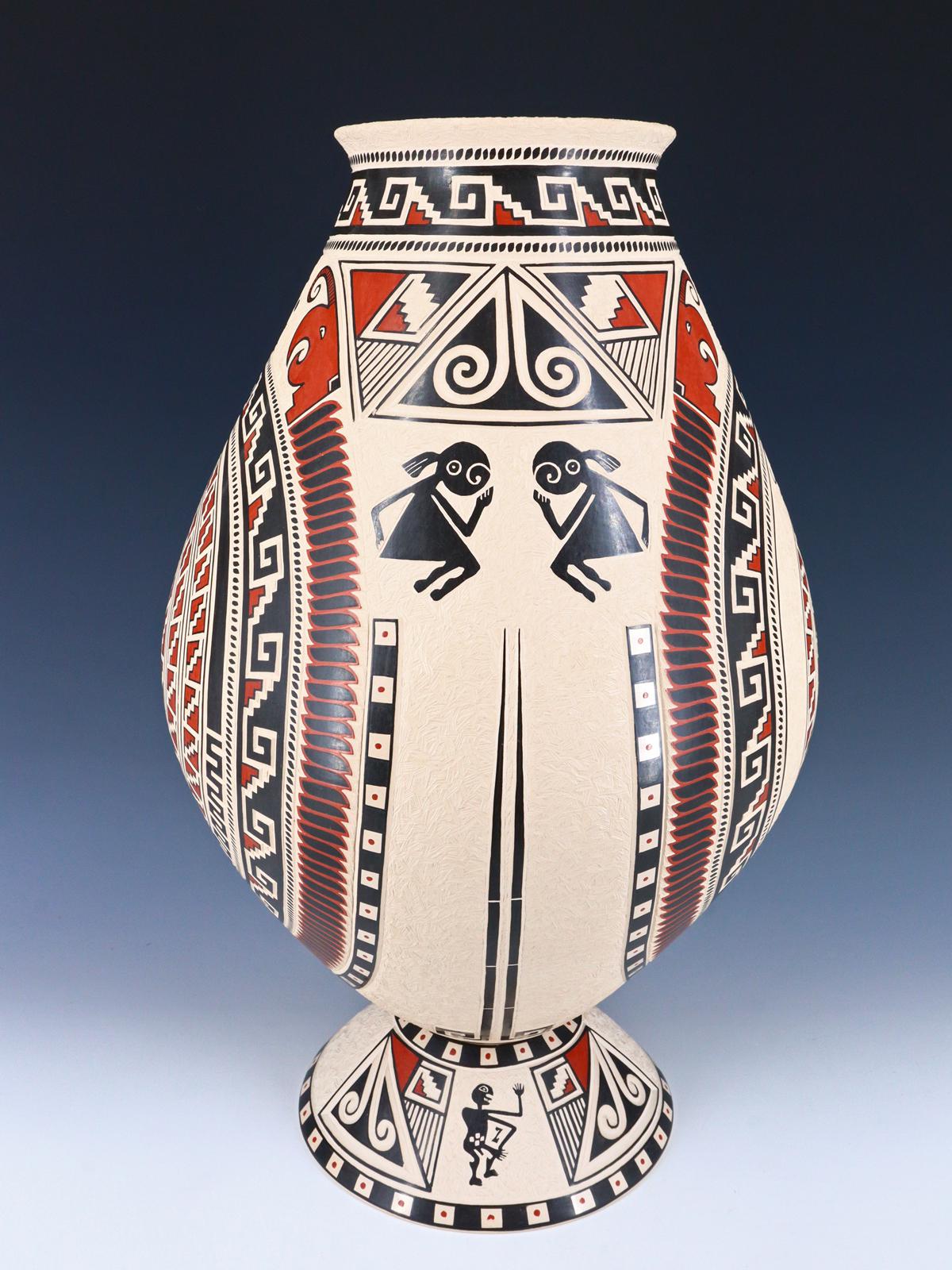 Poterie enroulée à la main Mata Ortiz avec support est en rupture de stock et sera expédié dès qu’il sera de retour en stock.