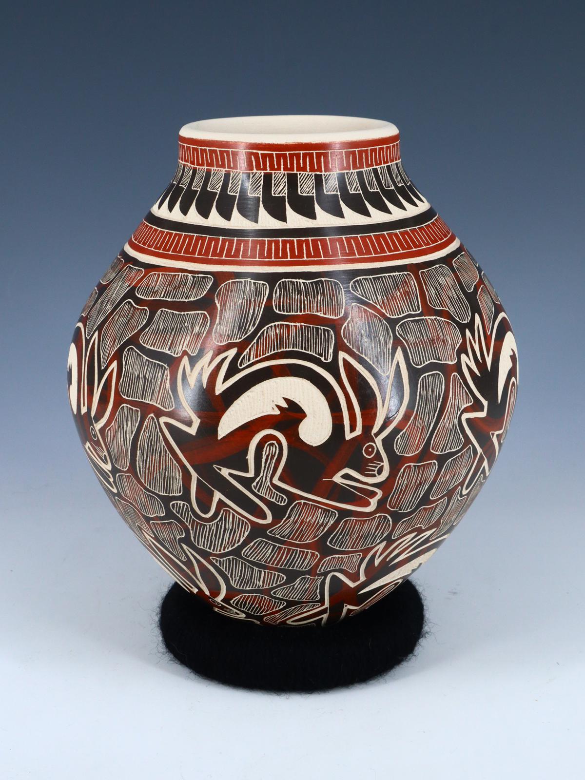 Mata Ortiz Poterie d’oiseau gravée enroulée à la main est en rupture de stock et sera expédié dès qu’il sera de retour en stock.
