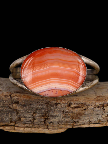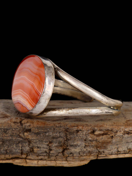 Native American Sterling Silver Coral Cobblestone Inlay Cuff Bracelet