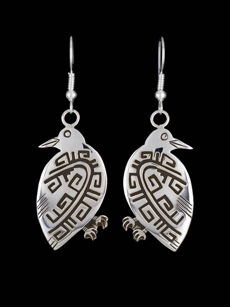 Boucles d'oreilles Roadrunner en argent sterling avec superposition de style Navajo Hopi