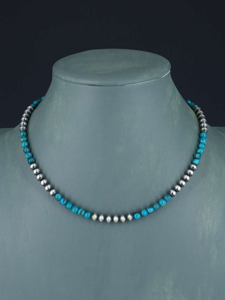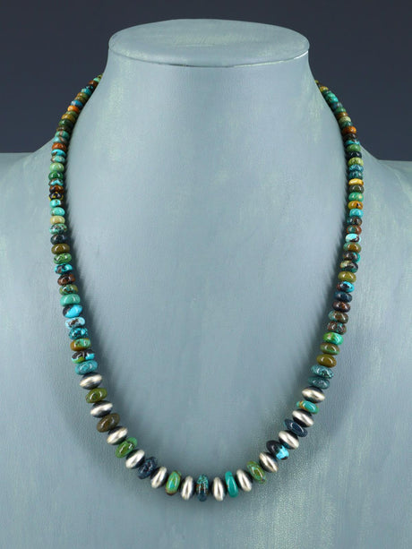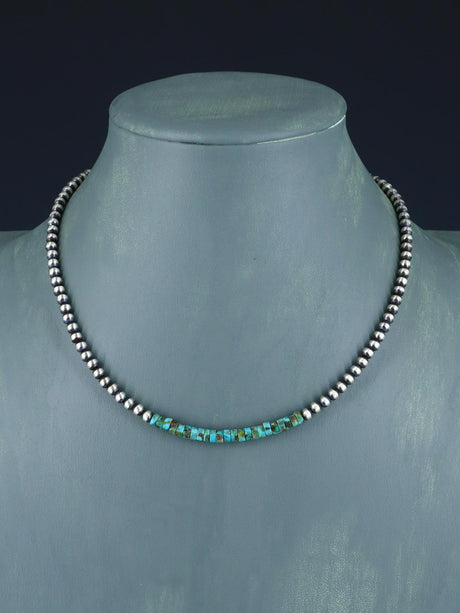 18" Native American Turquoise and Silver Bead Necklace