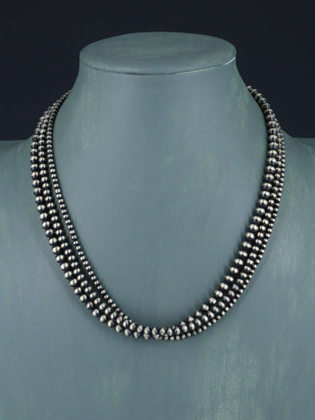 8mm Graduated Native American Sterling Silver Beaded Necklace, Multiple Lengths