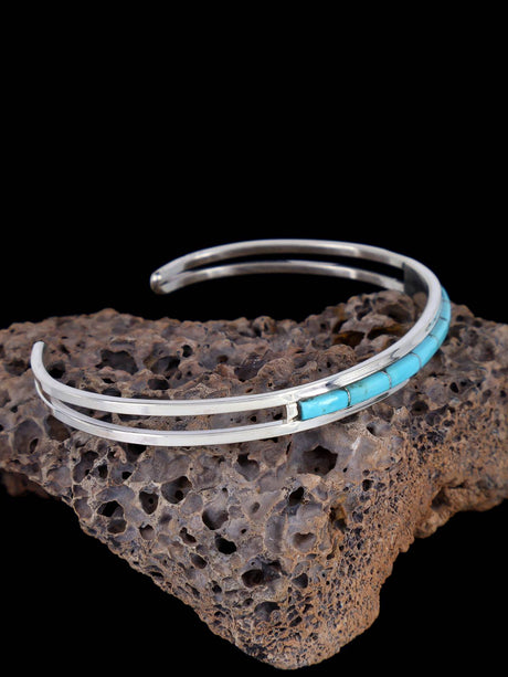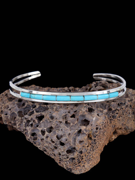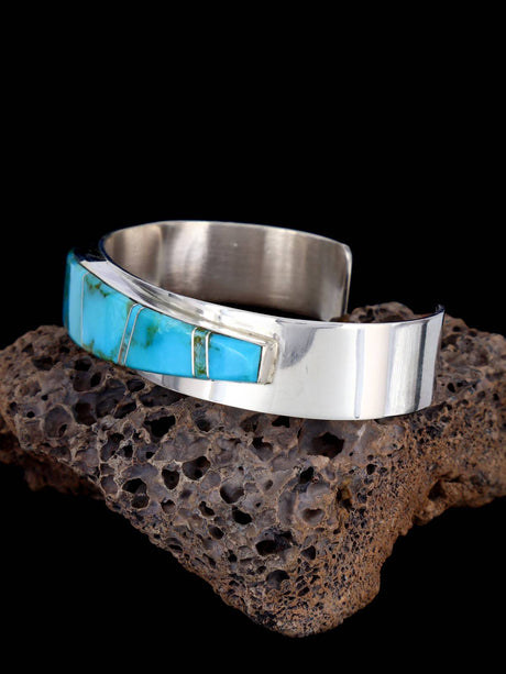 Native American Sterling Silver Kingman Turquoise and Coral Inlay Cuff Bracelet