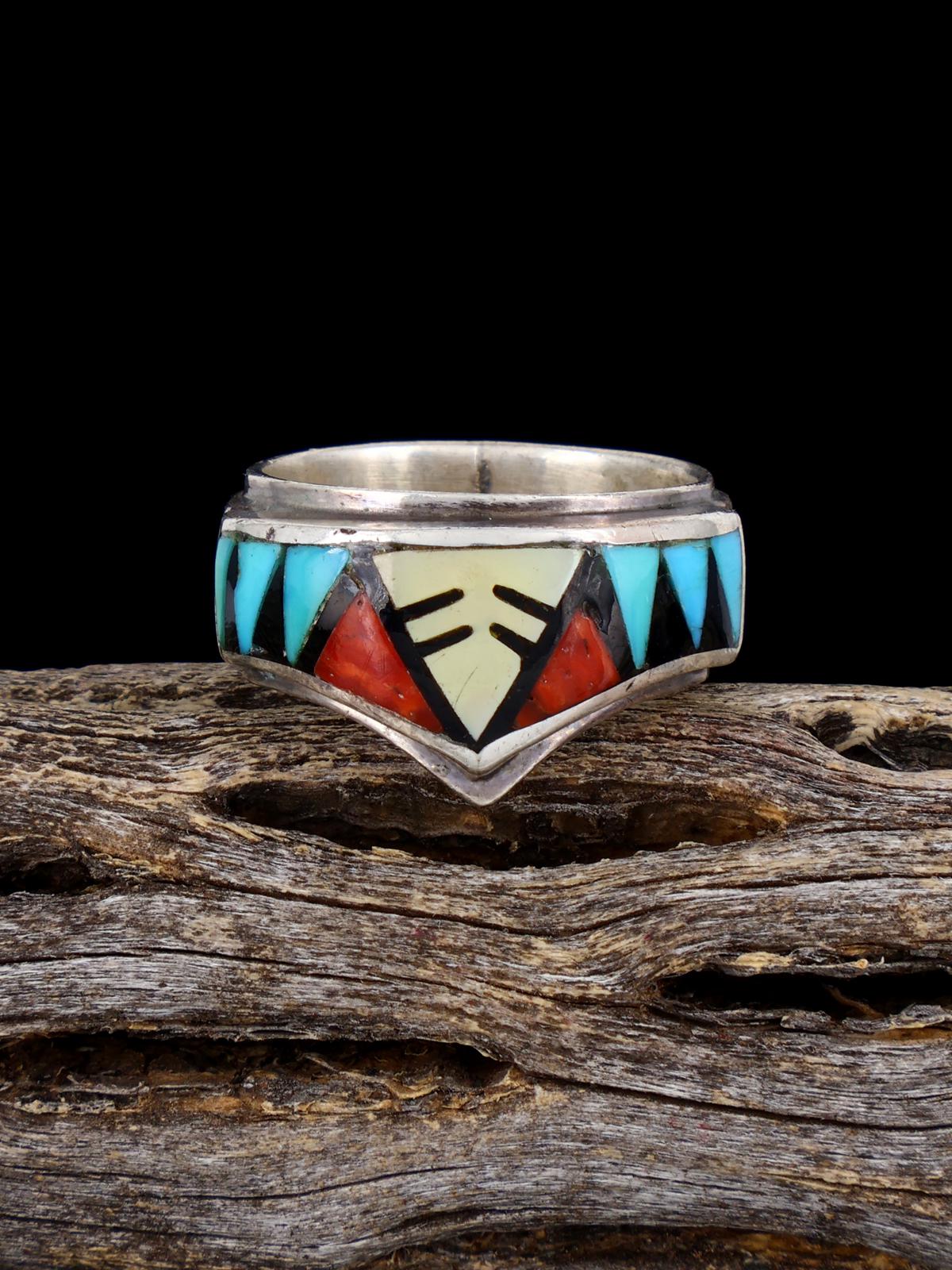 Bague incrustée d’argent sterling Zuni amérindien vintage, taille 5,5