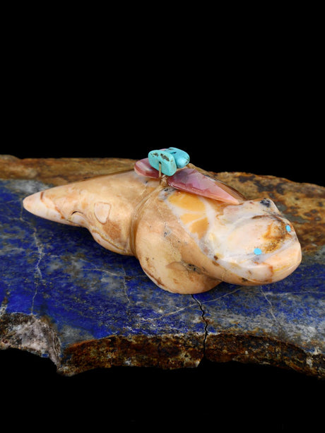 Les Indiens d’Amérique ont utilisé des fétiches tout au long de l’histoire. On pense que les sculptures fétiches détiennent des pouvoirs magiques et protègent le propriétaire ou les artisans de divers problèmes d’esprit ou de corps. Le fétiche indien Zuni doit être pris en charge et reçoit des offrandes de semoule de maïs et conservé dans des pots ou des pochettes fétiches spéciaux incrustés de turquoise. On pense également que les soins reçus par un fétiche amérindien sont directement proportionnels à la protection qu’il apportera.