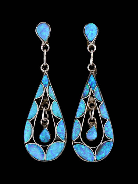 Bijoux amérindiens Boucles d'oreilles chandelier Zuni turquoise