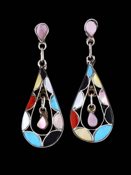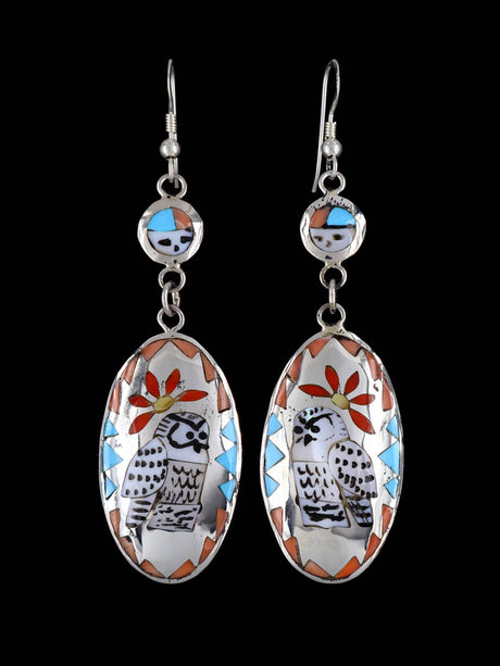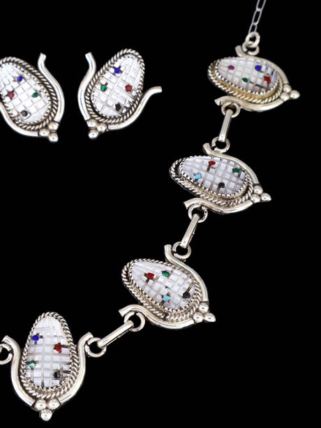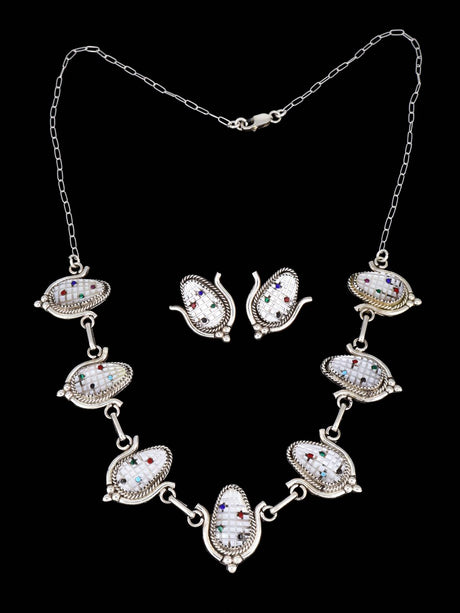 Sterling Silver Zuni Inlay Corn Maiden Necklace and Earrings Set