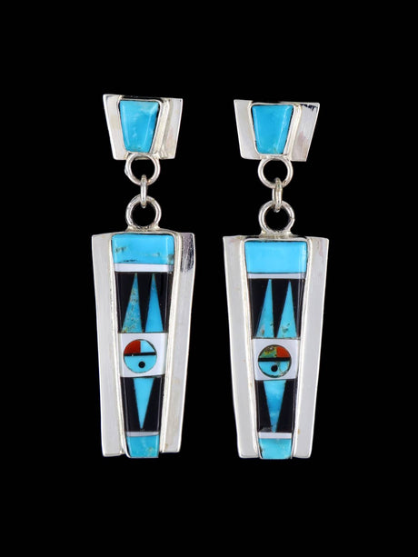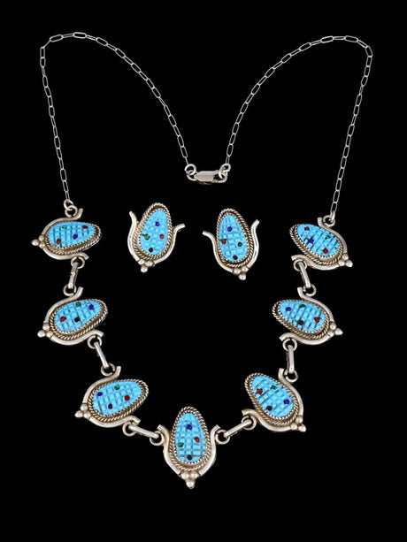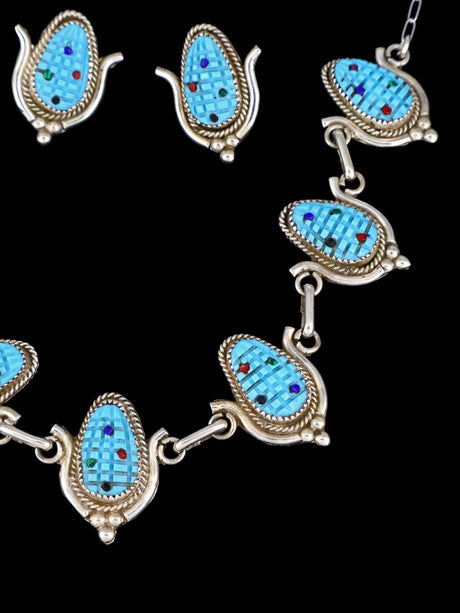 Turquoise Sterling Silver Zuni Inlay Necklace and Earrings Set
