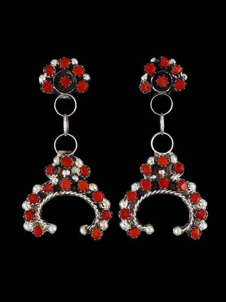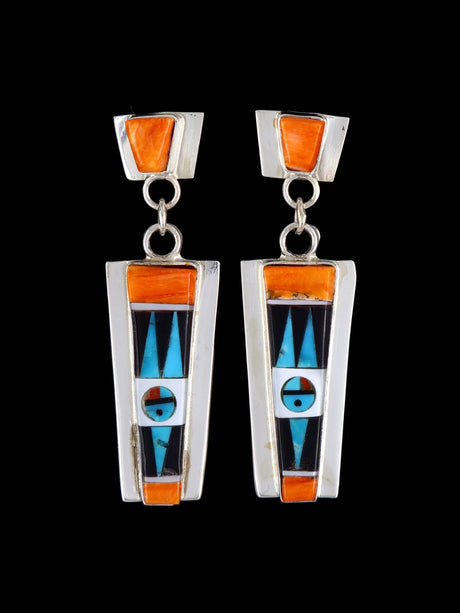 Boucles d'oreilles en argent sterling Zuni avec incrustation de turquoise et de corail