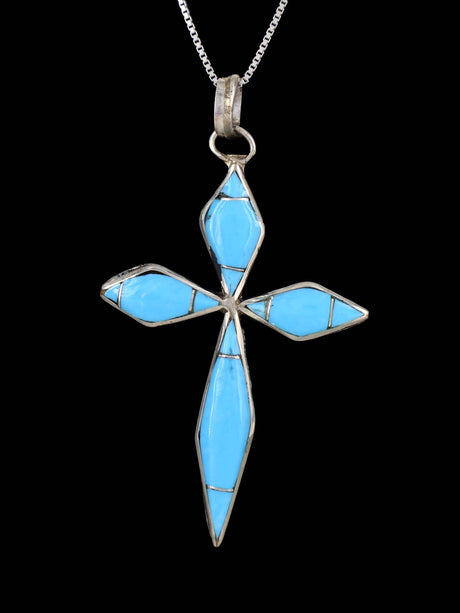 Pendentif croix en onyx noir incrusté de Zuni en argent sterling