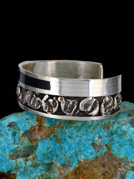 Bracelet manchette en argent sterling avec incrustation Zuni, onyx et turquoise