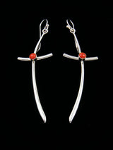 Native American Coral Dangle Cross Earrings