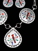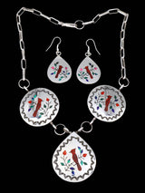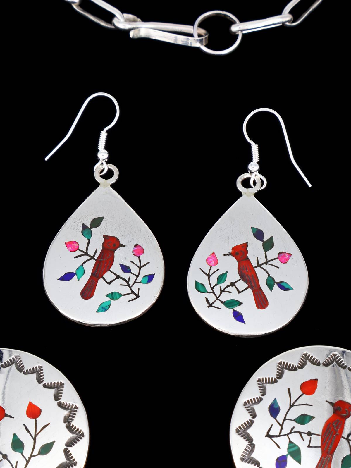 Native American Sterling Silver Inlay Red Cardinal Bird Necklace Set
