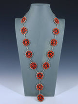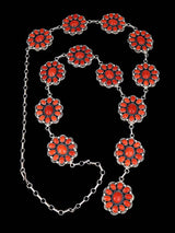 Native American Sterling Silver Natural Coral Lariat Necklace
